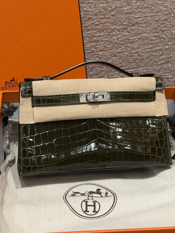 에르메스 Hermes Kelly Pochette 22cm Niloticus 2Q Vert Anglais/silver