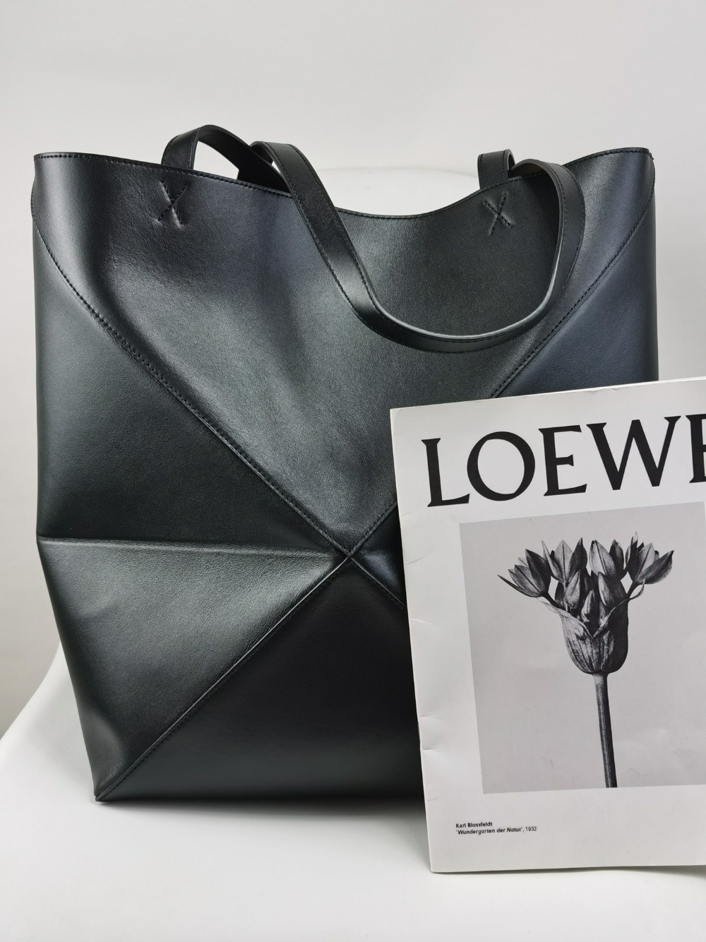 로에베 Loewe 1761 Large Puzzle Fold Tote In Shiny Calfskin Black 42cm > A 가방