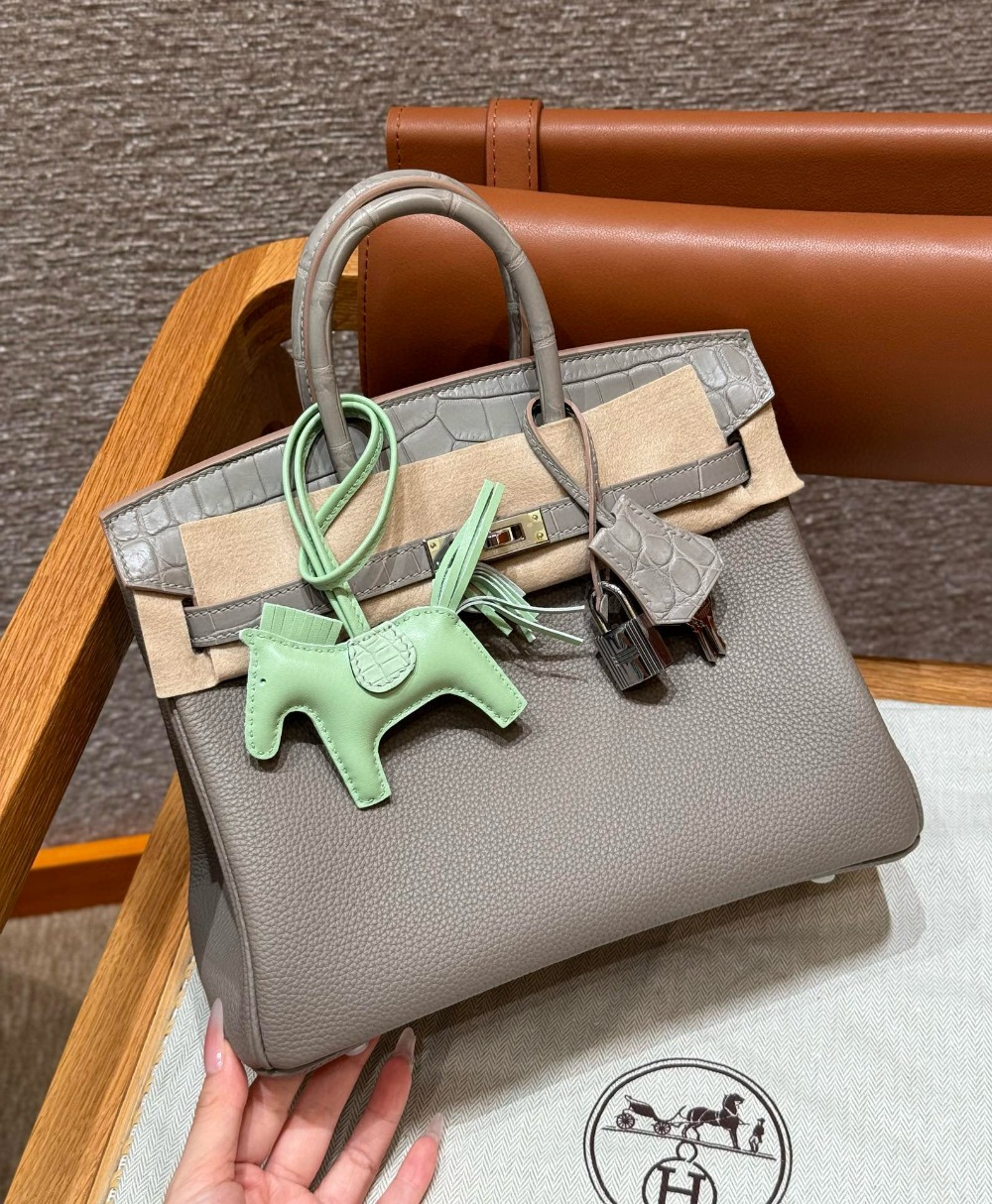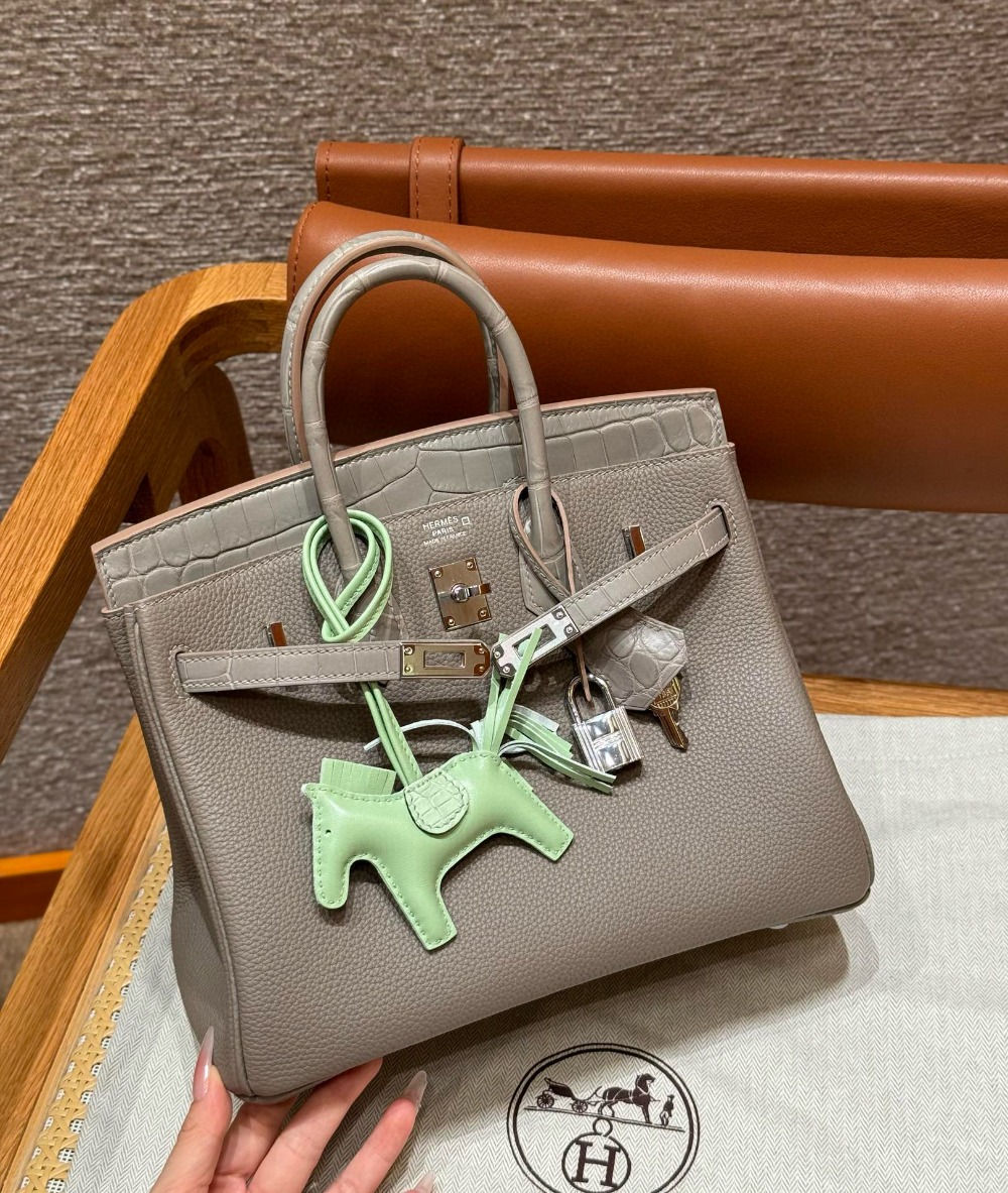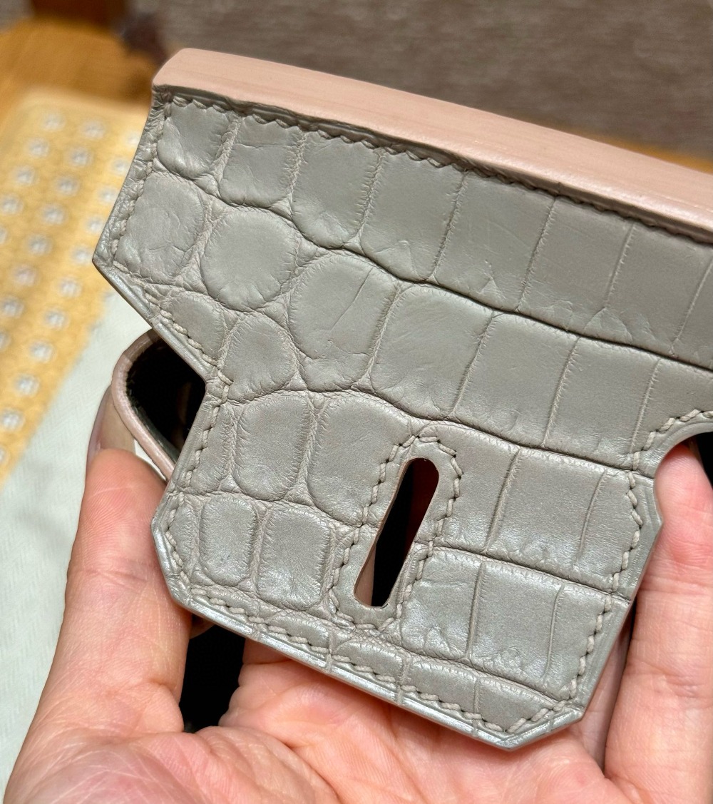 에르메스 Hermes Birkin Touch 25cm Togo and Matte Alligator 81 Gris tourterlle and M8 Gris Asphalte/silver
