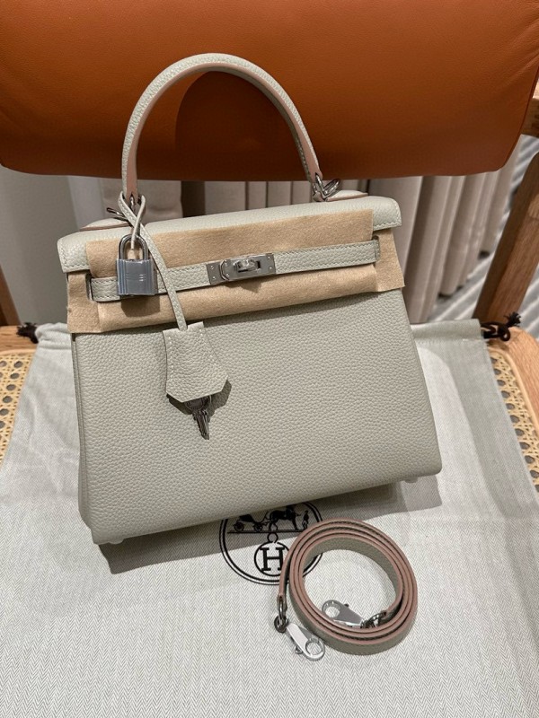에르메스 Hermes Kelly 25cm Togo 80 Pearl Gray/silver