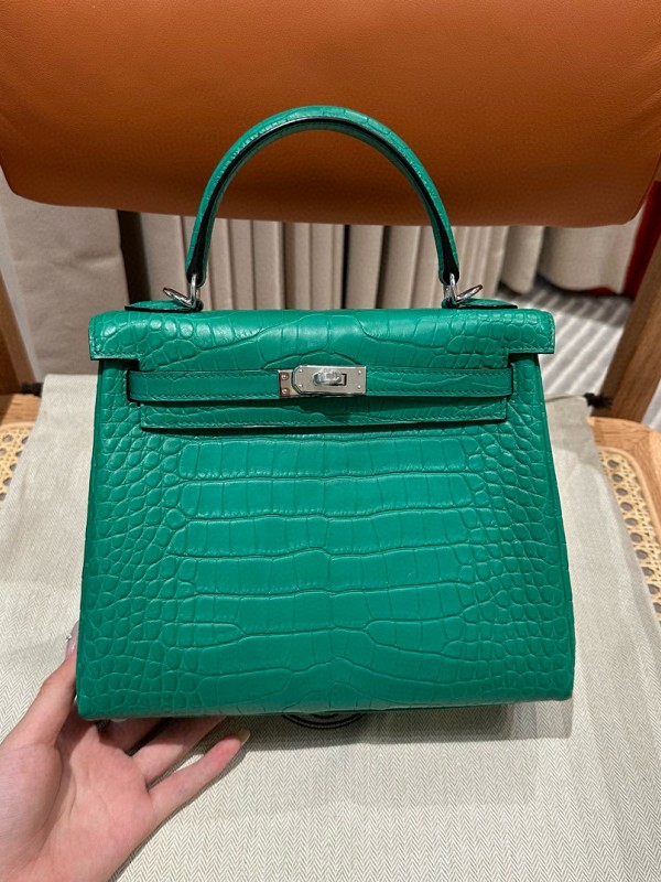 에르메스 Hermes Kelly 25cm Matte Alligator 0T Vert comics/silver