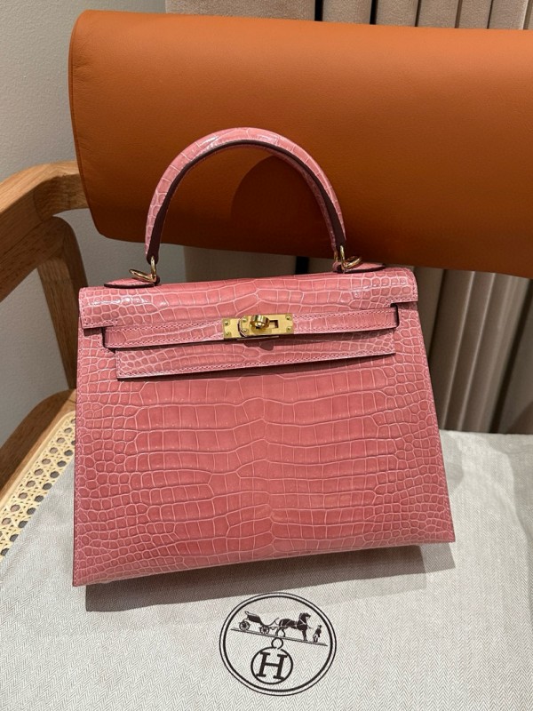 에르메스 Hermes Kelly 25cm Porosus shiny 1Q Rose Confetti/gold > A 가방