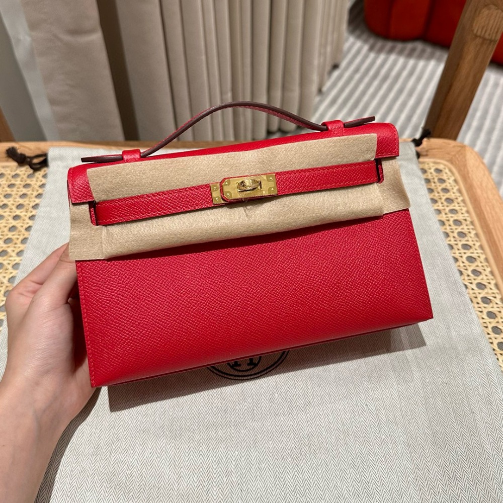 에르메스 Hermes Kelly Pochette 22cm Epsom Q5 Rouge casaque/gold