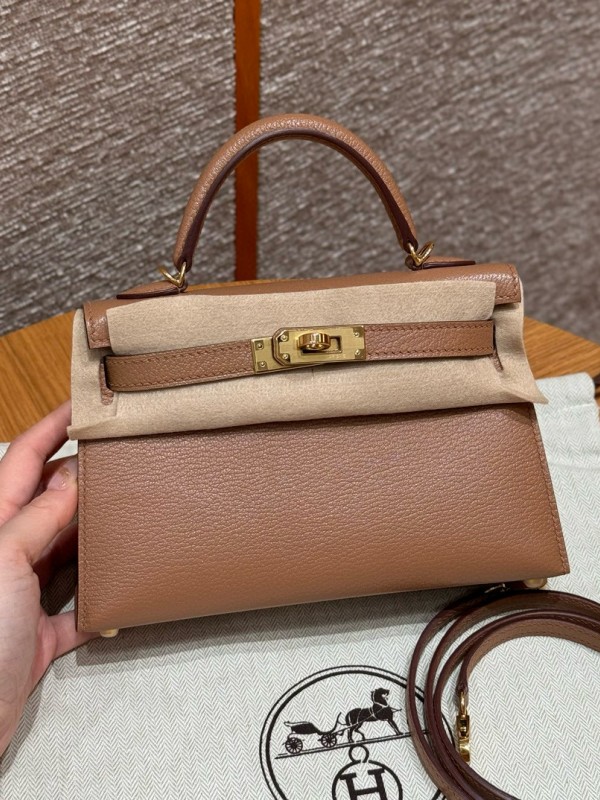 에르메스 Hermes Mini Kelly 19cm Chèvre 2J Quebracho/gold