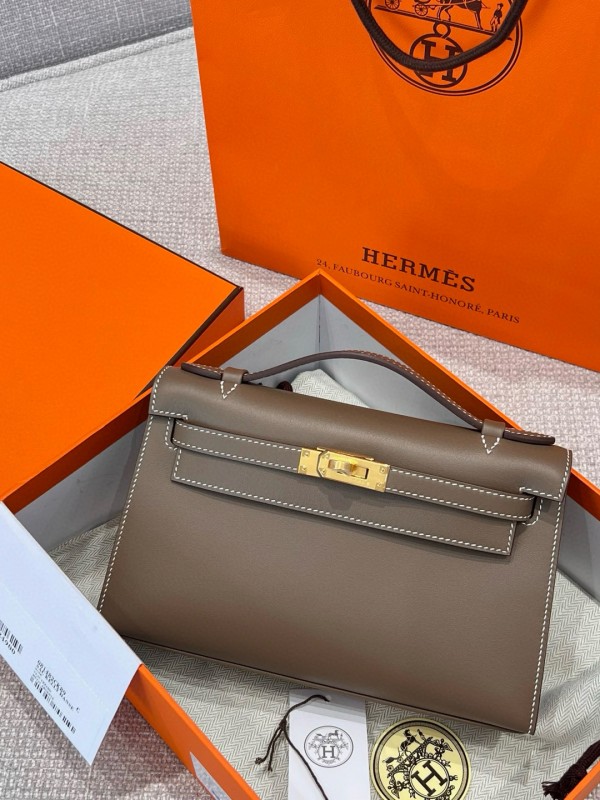 에르메스 Hermes Kelly Pochette Swift 18 Etoupe/silver > A 가방