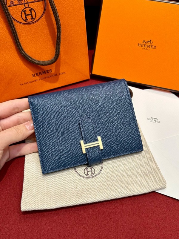 에르메스 Hermes Bearn Compact wallet 12cm Epsom 73 Blue saphir/gold