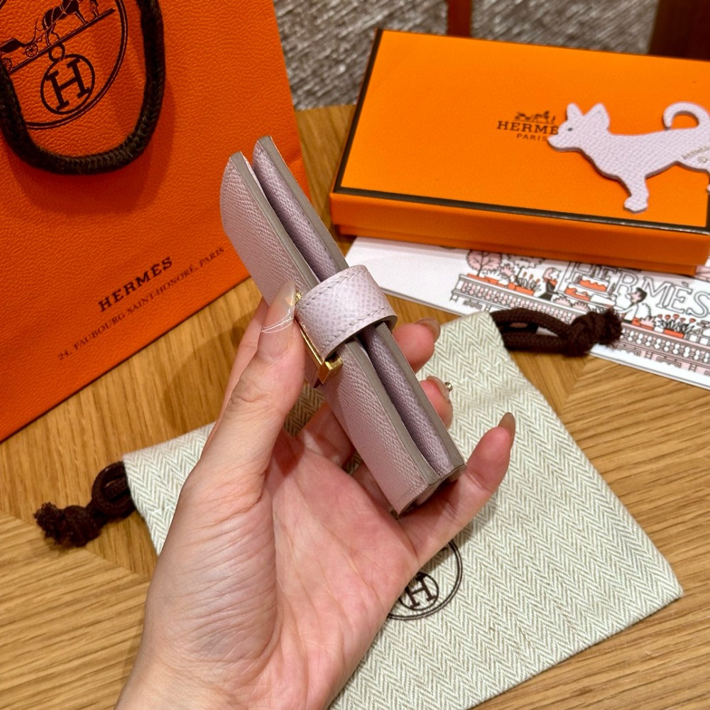 에르메스 Hermes Bearn card holder 10.3cm Epsom 09 Mauve pale/gold