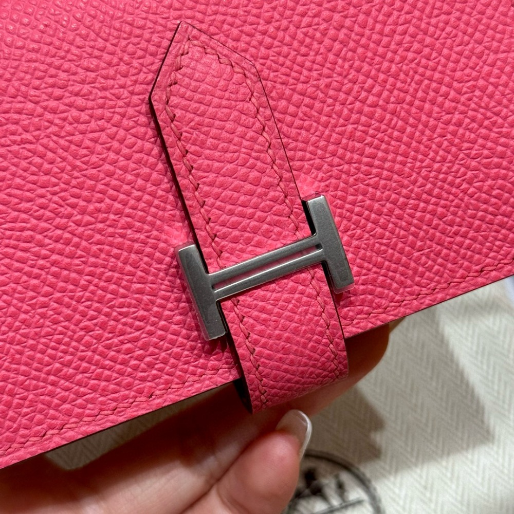 에르메스 Hermes Bearn card holder 10.3cm Epsom U5 Rose lipstick/silver