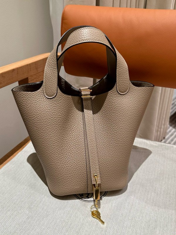 에르메스 Hermes Picotin lock 18cm clemence 81 Gris tourtlle/gold