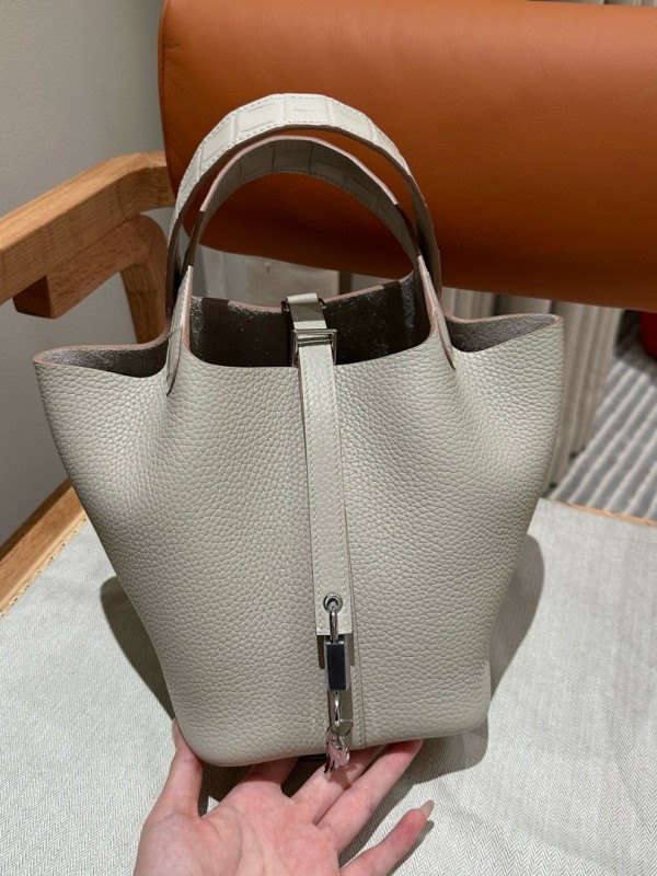 에르메스 Hermes Picotin Touch 18cm clemence and Matte Alligator 8L Beton/silver > A 가방