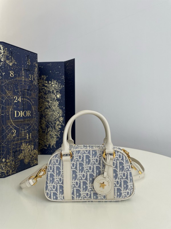 디올 Dior D-Vibe East-West Nano Bag Blue Oblique Chambray with Raffia Effect 20.5cm > A 가방