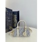 디올 Dior D-Vibe East-West Nano Bag Blue Oblique Chambray with Raffia Effect 20.5cm
