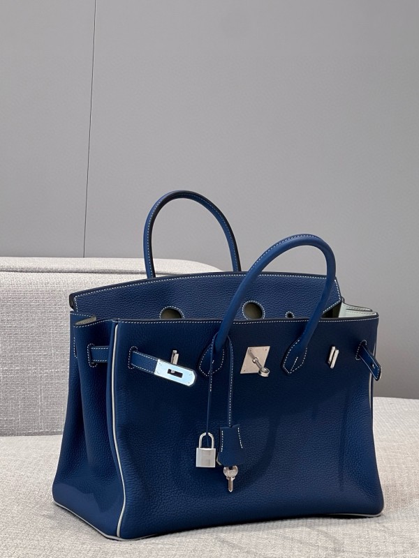 에르메스 Hermes Brikin 35cm Germany Leather 7P Blue Presse and 80Gris Perle/silver > A 가방