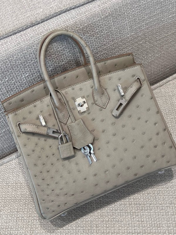 에르메스 Hermes Birkin 25cm KK ostrich 80 Gris Perle/silver