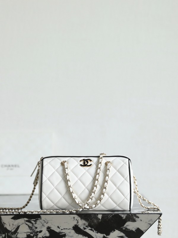 샤넬 Chanel 25P Chain Handle Bowling Bag White 18.5cm > A 가방