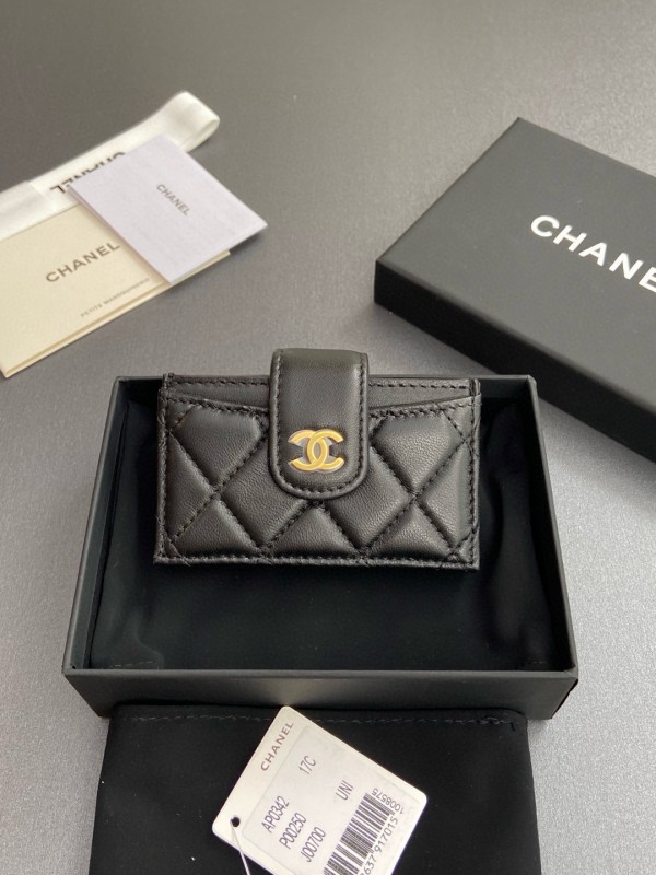 • 샤넬 Chanel 0342 Card Holder Black gold 10cm