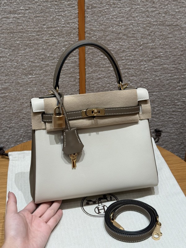 에르메스 Hermes Kelly 25cm Swift 10 Craie and 18 Etoupe/gold