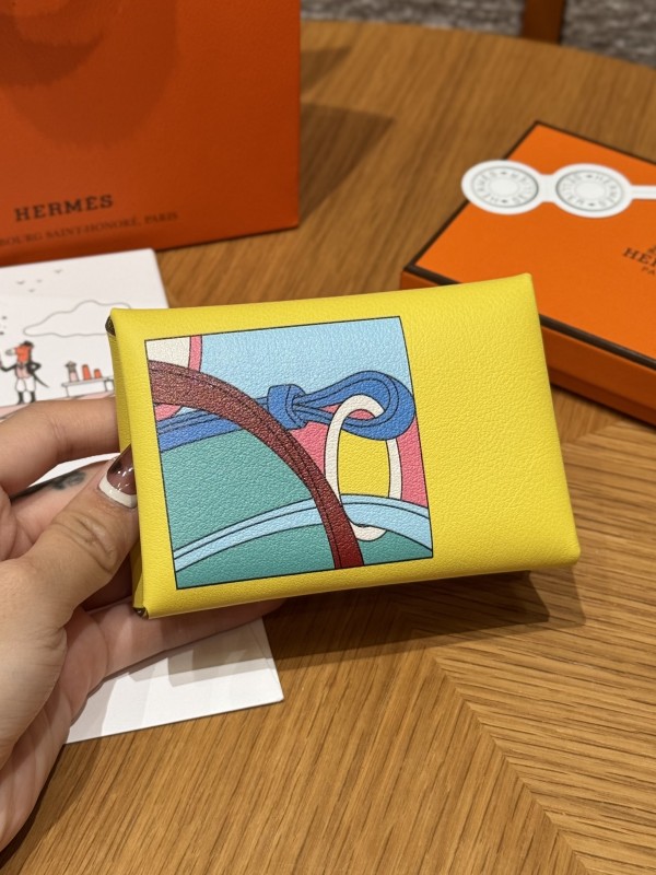 에르메스 Hermes Calvin duo Card Holder 10cm Swift and Chèvre 9R Lime/silver > F 소품