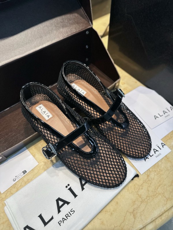 알라이아 Alaia Ballet Flats in Fishnet Black > E 여성 슈즈