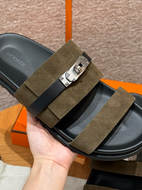 에르메스 Hermes 161 Jackson sandal Chamois&Vert Toundra and Noir