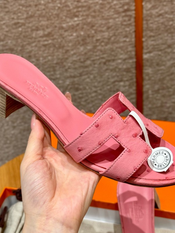 에르메스 Hermes 185 Oasis sandal KK Ostrich&L4 Bubble gum > E 여성 슈즈