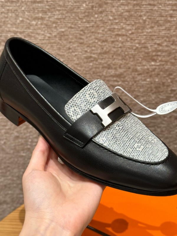 에르메스 Hermes 192 Royal loafer Lizard&89 Noir and Himalaya