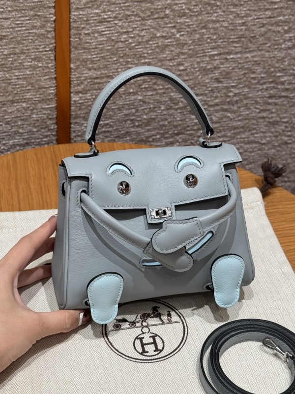 에르메스 Hermes Kelly Doll 16cm Swift 8U Blue Glacier and C6 Vert Girs/silver