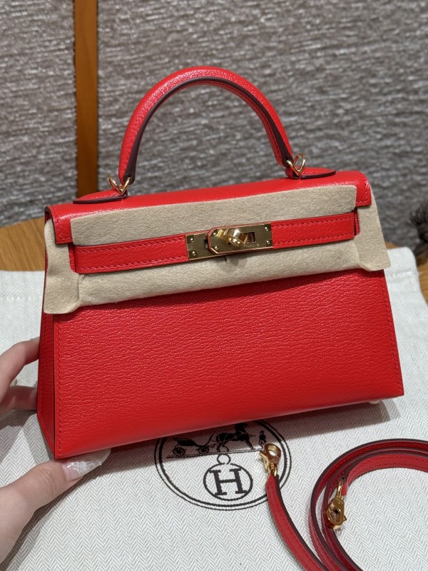에르메스 Hermes Mini Kelly 19cm Chèvre S3 Rouge Coeur/gold