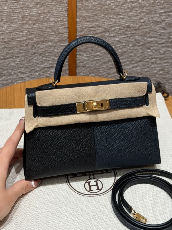 에르메스 Hermes Mini Kelly 19cm Epsom 89 Noir 76 Blue indigo K1 Rouge grenat/gold