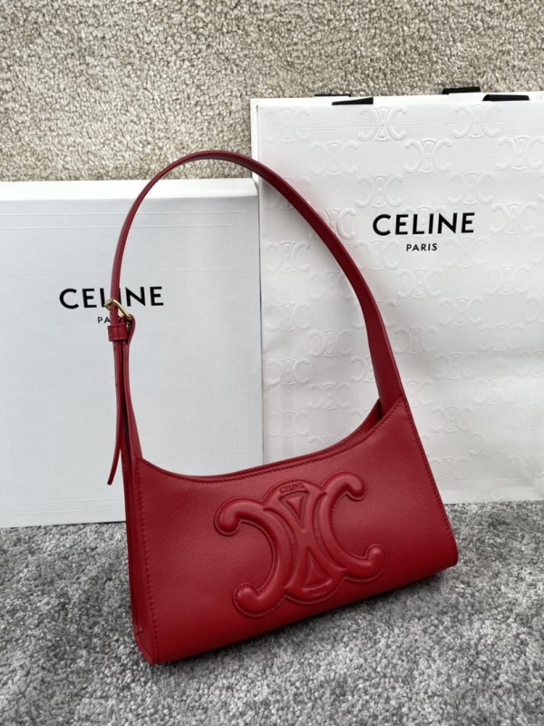 셀린느 Celine 198153 Shoulder Bag Cuir Triomphe in Smooth Calfskin Red 24cm > Celine