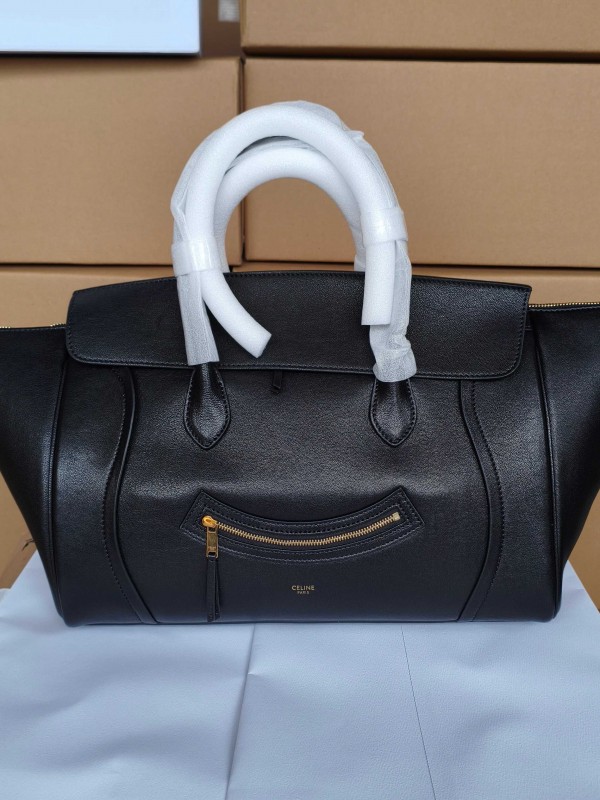 셀린느 Celine 123693 Medium Smiling New Luggage in Supple Shiny Lambskin Black 36cm
