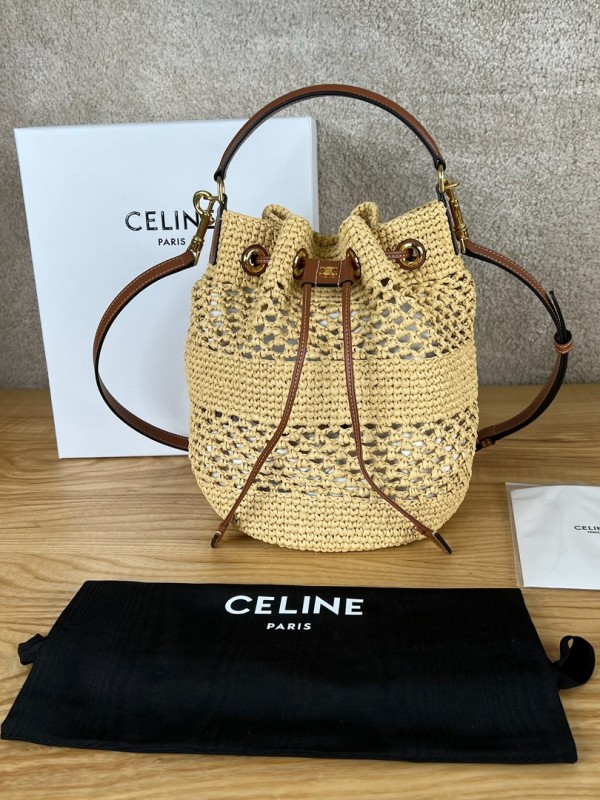 셀린느 Celine 116882 Teen Clara Bag in Raffia and Calfskin Natural Tan