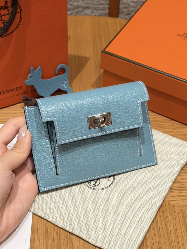 에르메스 Hermes Kelly pocker wallet 13cm Chèvre 75 Blue Jean/silver