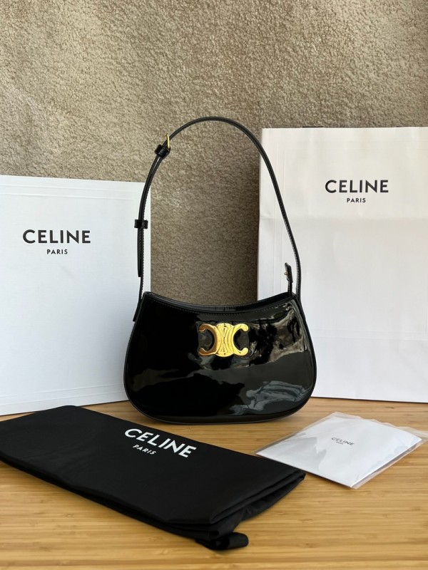 셀린느 Celine 115703 Medium Tilly Bag in Patent Calfskin Black 22cm > Celine