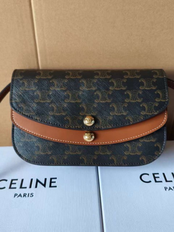 셀린느 Celine 10P672 Duo Wallet on Strap in Triomphe Canvas and Calfskin Tan 20cm > Celine