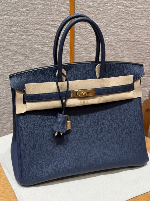 • 에르메스 Hermes Birkin 35cm Togo 73 Blue Saphir/gold