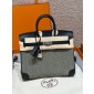 에르메스 Hermes Toile H Birkin 25cm Swift and Waffle Canvas Noir Ecru fauve/silver