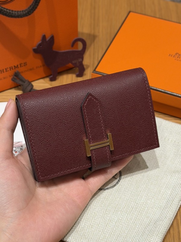에르메스 Hermes Bearn mini wallet 10.3cm Madame 55 Rouge H/gold
