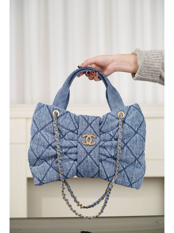샤넬 Chanel 25k AS5851 Bow bag Blue 38cm