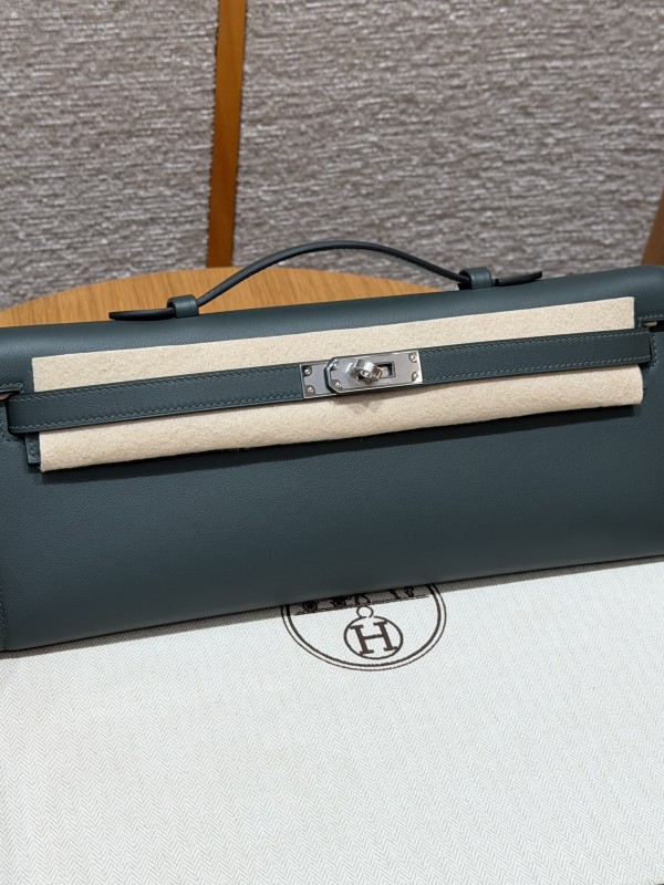에르메스 Hermes Kelly cut 31cm Swift Q0 Vert Mangrove/silver