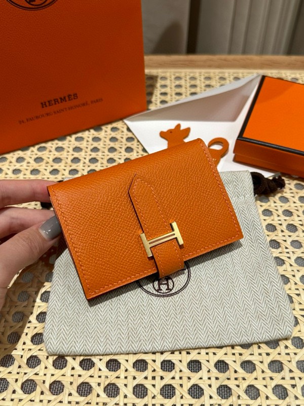 에르메스 Hermes Bearn card holder 10.3cm Epsom 93 Orange gold/silver > F 소품