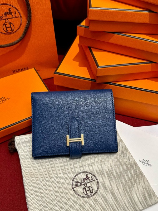 에르메스 Hermes Bearn Compact wallet 12cm Chèvre S4 Deep Blue/gold
