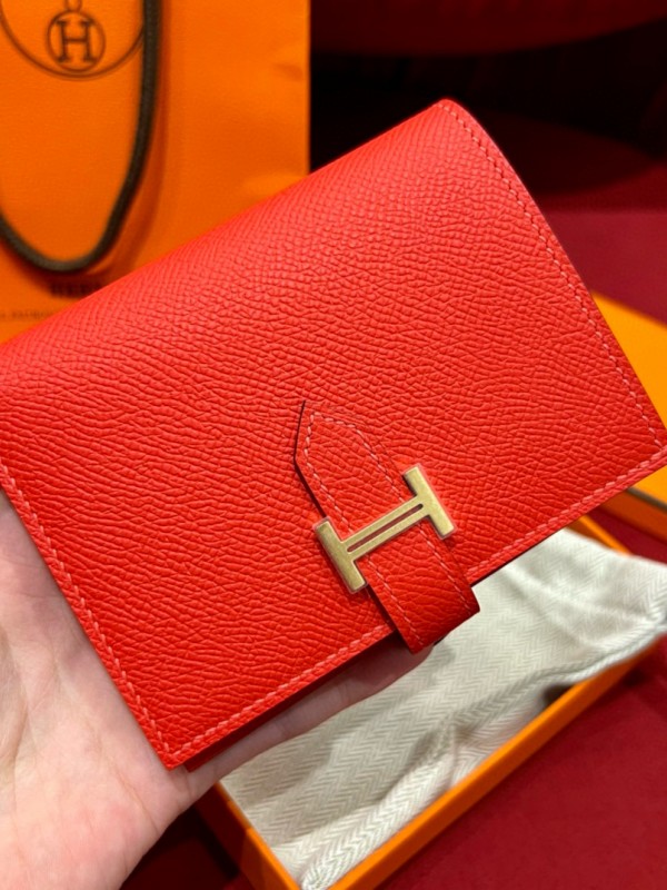 에르메스 Hermes Bearn Compact wallet 12cm Epsom Q5 Rouge casaque/gold