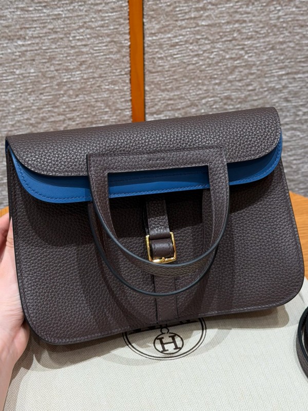에르메스 Hermes Halzan 25cm clemence 3S Macassar and B3 Blue Zanzibar/gold > A 가방