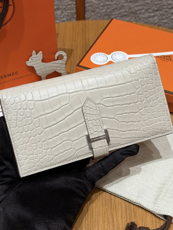 에르메스 Hermes Bearn wallet Soufflet 17.5cm Alligator 8L Beton/silver > F 소품