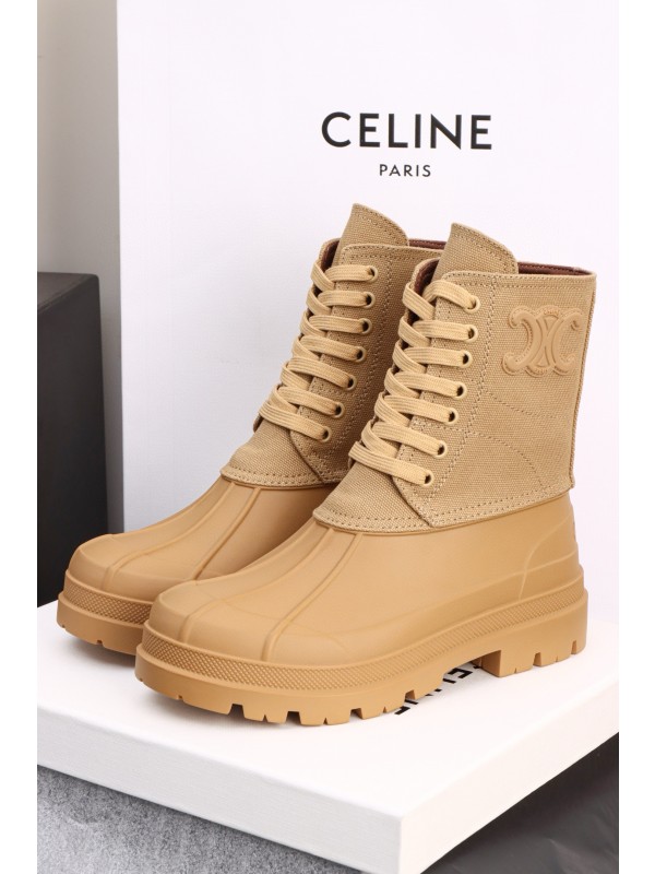 셀린느 Celine Riley Lace-Up Boot in Canvas Caramel