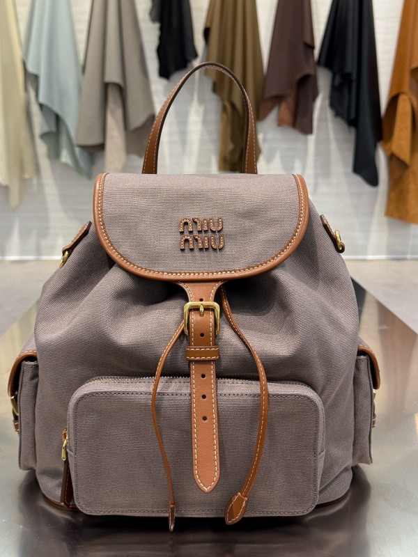 미우 미우 Miu Miu 5BZ042 Canvas and leather backpack Aluminum 30cm > A 가방