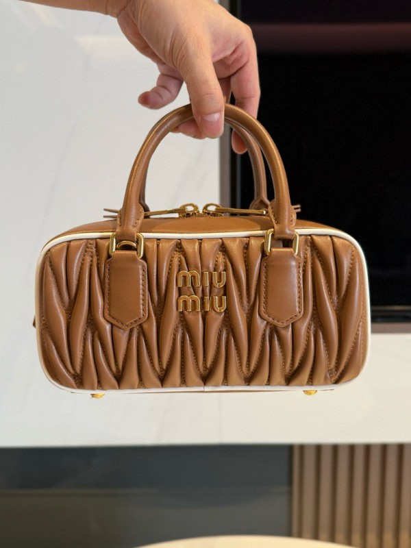 미우 미우 Miu Miu 5BB142 Arcadie 마테라쎄 나파 레더 백 Cognac White 22cm > A 가방