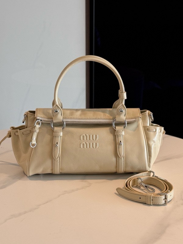 미우 미우 Miu Miu 5BA328 샤이니 가죽 핸드백 Travertine Stone 35cm > A 가방
