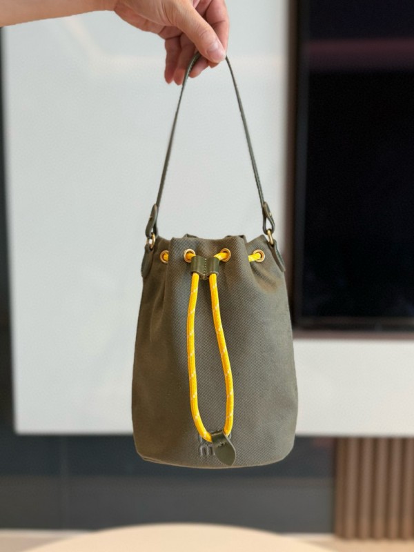 미우 미우 Miu Miu 5NR038 Gabardine Pouch Olive Green Yellow 16cm > A 가방
